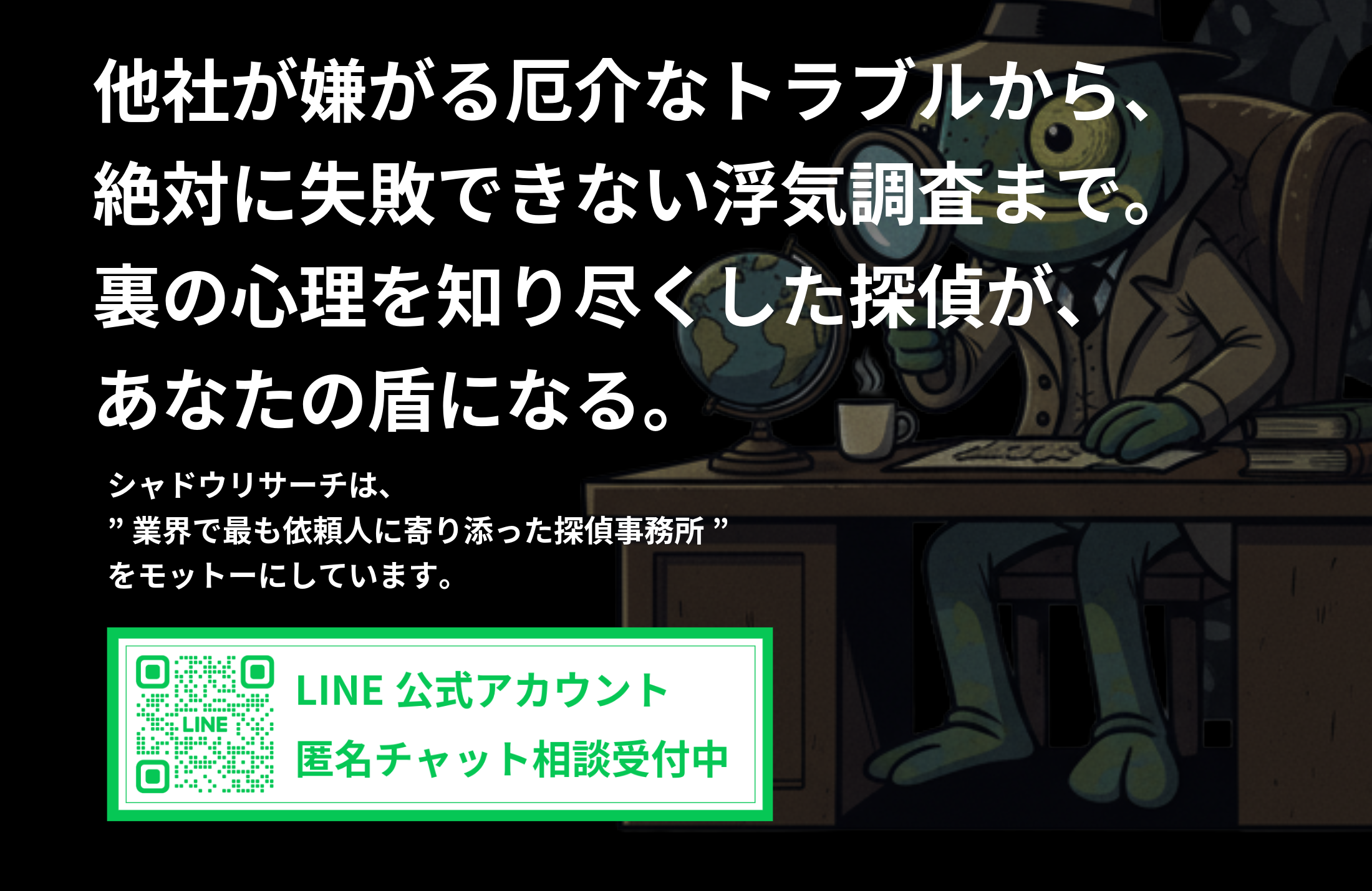 シャドウリサーチは、あなたの平穏を取り戻すための「最強の味方」であることをお約束します。